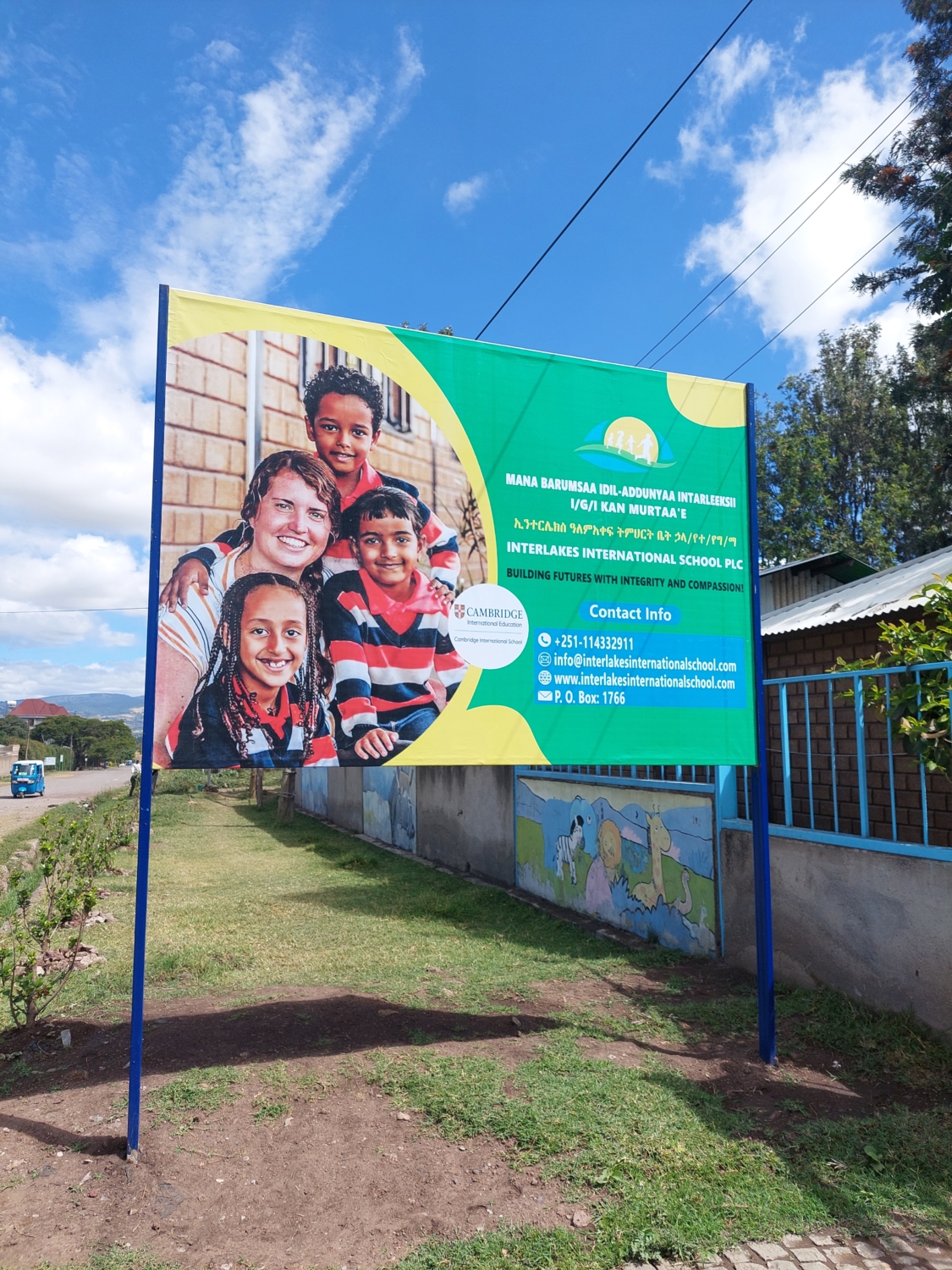 Onlangs is er een nieuw bord geplaatst bij de ingang van de school.